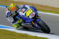 Valentino "The Doctor" Rossi in 2008 op zijn speciaal geschilderde Yamaha tijdens de MotoGP op het TT-circuit in Assen, Nederland.
