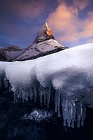 Het laatste daglicht op de nationale berg van Noorwegen: Stetinden in hartje winter. (2019)
