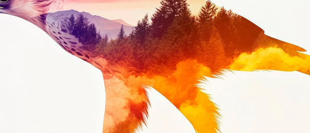 Een majestueuze vogel gehuld in de kleuren van adembenemende landschappen - zachte paarse en oranje tinten vermengen zich harmonieus met natuurlijke elementen. Deze artistieke compositie vangt de vrijheid van de natuur en geeft elke kamer een inspirerend tintje. Ideaal voor de woonkamer, waar het de blik van de kijker gevangen houdt en inspireert tot dromen.