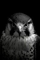 Majestueus en beklijvend, de blik van deze valk kijkt recht in de ziel, omgeven door een mysterieus zwart. De scherpe contouren en het gevederde patroon geven het een nobele aanwezigheid die zowel sterk als rustig is. Ideaal voor in de woonkamer, waar het een krachtig statement en een gespreksonderwerp is.