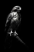 Met een indrukwekkende aanwezigheid en majestueuze elegantie zit de roofvogel tronend op de tak, zijn scherpe ogen stralen vastberadenheid uit. De eenvoudige zwart-wit look vangt de krachtige schoonheid van de natuur en voegt een dramatisch tintje toe aan elke kamer. Perfect voor een woonkamer om gesprekken te stimuleren en een sfeer…