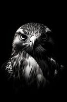 Een majestueuze roofvogel valt op met zijn vastberaden ogen, omgeven door mysterieuze duisternis. De indrukwekkende details van zijn verenkleed creëren een fascinerend contrast. Dit indrukwekkende werk vult elke kamer met een aura van kracht en gratie, perfect als blikvanger in de woonkamer of ter inspiratie in het thuiskantoor.