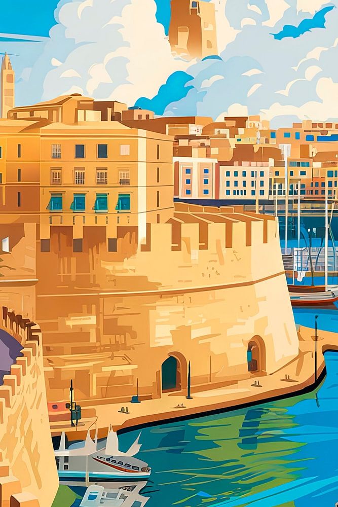 Een stralend blauw omarmt de kust van Malta, terwijl zachte wolken over de historische gebouwen van Valletta zweven. De kronkelende promenade langs het water nodigt je uit voor een ontspannen wandeling terwijl pittoreske bootjes dobberen in het glinsterende water. Majestueuze vestingmuren bewaken de schoonheid van deze stad, die zichtbaar schittert in de zon en het hart van de Middellandse Zee belichaamt.