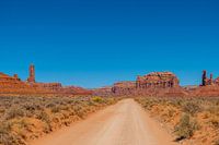 Gravelweg door het adembenemende landschap van Valley of the Gods in Utah, vlak bij het wereldberoemde Monument Valley.