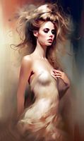 Impressionistisch schilderij met het portret van een verleidelijke blonde vrouw.