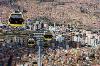De gele kabelbaanlijn van La Paz naar het bovengelegen El Alto, Bolivia