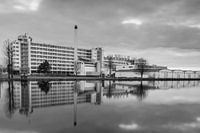 Van Nelle fabriek aan de Schie in Rotterdam in zwartwit.