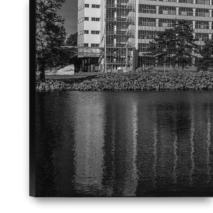 De Van Nellefabriek in Rotterdam, vastgelegd in een strakke zwart-wit compositie vanaf de waterkant. Deze voormalige tabaks- en koffiebranderij uit de jaren 30 is een schoolvoorbeeld van het Nieuwe Bouwen en staat sinds 2014 op de UNESCO Werelderfgoedlijst. De industriële lijnen, de reflectie in het water en de dramatische lucht geven…