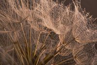 "Van binnenuit de morgenster" is een macrofoto een morgenster waarbij je het gevoel krijgt alsof je zelf ook bijna in deze pluizenbol zit. Deze pluisjes zijn van schuin onderaf gefotografeerd. Deze bewerkte foto heeft warme kleuren: beige, gouden bruine tinten en een donkere achtergrond.