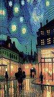 Stad bij nacht op basis van de van de typische en unieke van Gogh stijl..