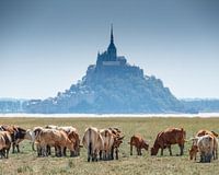 Koeien op de vlaktes bij Mont Saint-Michel in Normandië, Frankrijk.