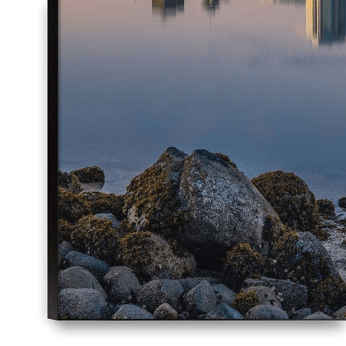 De skyline van Vancouver is wat mij betreft een wat ondergewaardeerd uitzicht. Deze foto is gemaakt op een zomerse dag in de Canadese stad. De zon kwam langzaam achter mij op en zorgde voor een prachtige roze lucht. Daarbij was het windstil waardoor het water een mooie spiegel werd bij een lange sluitertijd.
