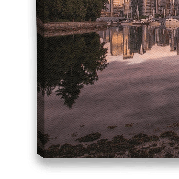 De skyline van Vancouver bij zonsondergang. Prachtige, moderne stad met veel gezichten. Lange belichting gebruikt voor beweging in de wolken.
