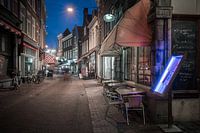 Vroege avond op de Lange Veerstraat in de stad Haarlem, Nederland