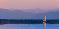 Zeilboot op de Ammersee in het avondlicht, Beieren, Duitsland