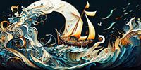 Onze nieuwe abstracte schilderkunst brengt de kracht en de schoonheid van de golven tot leven op jouw muur. Met dit schip dat vaart over de wilde oceanen wordt er de emoties opgewekt van daadkracht. Dat hindernissen er zijn om sterker te worden en dat het leven een wilde maar prachtige ervaring kan zijn. De vogels die ontstaan vanuit de golven zijn herinneringen die worden gemaakt en de complexe golven (links) zijn de uitdagingen en kansen die onderweg aangegaan worden.