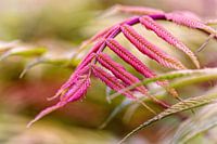 Opvallende roze kleur van het blad aan deze varen.