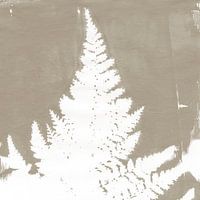 Deze serie botanische kunst bestaat uit een opvallend wit varenblad, gedrukt als monotype tegen verschillende achtergronden met rijke textuur. Elk stuk vangt de delicate structuur en natuurlijke elegantie van de varen in helder wit, terwijl de achtergronden - variërend van zachtroze en warm oker tot aards taupe en diepzwart - een aparte stemming en sfeer bieden.