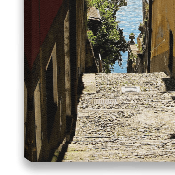 Typisch Italiaans steegje, in het dorpje Varenna, dat uitkomt op het Comomeer.