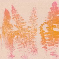 Gemengde media botanische collage. Monotype print van echte bloemen, bladeren of planten gecombineerd met texturen.
