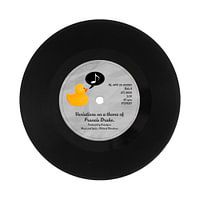 Artwork for the Grüntyers 45rpm single “Variations on a theme of Francis Drake” featuring a singing bathroom rubber duck on a vinyl record.
