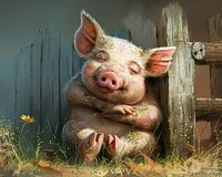 Varken Vreugde | Serene Snout Zen - varken gelukkig schilderij
