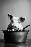 In stijlvol zwart-wit steekt het nieuwsgierige varkentje charmant af tegen de koperen pot. Met een vleugje humor en nostalgie geeft dit kunstwerk de keuken een levendig karakter. Het nodigt je uit om met vrienden te koken en culinaire herinneringen te creëren terwijl je een glimlach op je gezicht tovert.