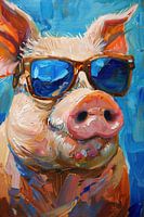 Details: varken, zonnebril, blauw, bruin, roze, humor, kleurrijk, modern, dier, reflectie