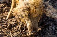 Wolvarkens (Mangalitsas) op de biologische boerderij "De Warmonderhof".