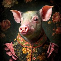 Een klassiek portret van varkentje, gekleed in een statig jasje