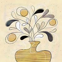 Dit bijna abstracte bouquet in de vaas is gestileerde hippe weergave van de werkelijkheid.