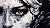 In deze minimalistische graphic ligt de focus op de close-up van een vrouwenoog, dat een vastberaden blik uitstraalt. De reductie tot de essentie geeft het beeld een duidelijke intensiteit. De fijne lijnen en zachte arceringen leggen de essentie van het moment vast, terwijl de uitdrukking van vastberadenheid is gevangen in de blik. De zorgvuldig gekozen details benadrukken de elegantie en kracht van de vrouwelijke uitstraling. Het spel van licht en schaduw geeft het beeld een subtiele diepte en benadrukt de individualiteit van de blik. Deze kunstwerkcreatie nodigt de kijker uit om zich te concentreren op de nuances van emotie en kracht die in één oogopslag worden gevangen. Een eerbetoon aan de schoonheid in detail en de kracht van vastberadenheid.