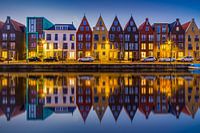 Deze foto is een half uurtje na zonsondergang gemaakt van de interessante, kleurrijke huisjes van Amersfoort Vathorst.