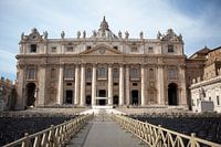 Vanuit het Sint Pietersplein is dit het zicht op het Vaticaan - de plaats waar de paus op het balkon verschijnt. Op het plein staan stoeltjes omdat er weer een dienst gaat plaatsvinden.