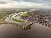 Hoge waterstand in de Vecht bij Dalfsen in het Nederlandse Vechtdal in Overijssel, Nederland. De rivier stroomt over in de uiterwaarden tijdens deze wintermiddag.