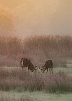 Koop de foto Vechtende herten van rik janse als print op canvas, aluminium dibond, (ingelijste) fotoprint, behang en ArtFrame. Voor jou op maat geprint in Fine-Art kwaliteit.