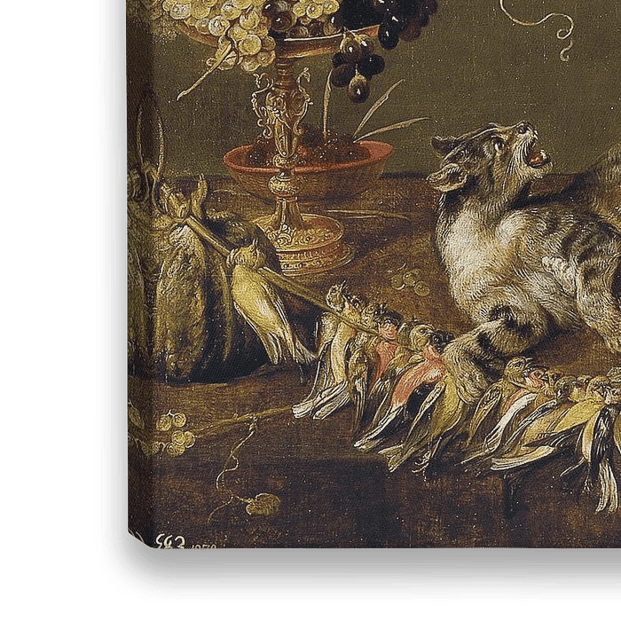 Stilleven van vechtende katten in een voorraadkast van Paul de Vos. Een interessant alternatief voor de doorgaans statische stillevens van eten of een jachtbuit.
