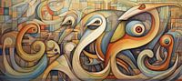 Details: vogels, abstract, kunst, schilderij, modern, jeugdig, licht, kleurrijk, dynamisch, decoratief