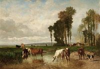 Vee bij een drinkplaats, Constant Troyon (1850)