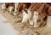 Vee wordt gevoerd in een stal in Zuid-Duitsland