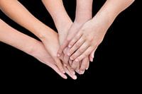 Veel armen van kinderen met handen op elkaar van Ben Schonewille