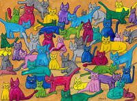 Dit motief was erg leuk om te schilderen. Overal kleurrijke katten, op elkaar, achter elkaar, naast elkaar, zeker niet mijn laatste motief in deze stijl....