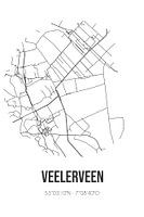 Zwart-witte landkaart, stratenplan of plattegrond van Veelerveen. Veelerveen is gelegen in de gemeente Westerwolde, provincie Groningen. Op de stadskaart zijn alle openbare wegen in Veelerveen opgenomen. Verder is de kaart voorzien van de coördinaten van het centrum van Veelerveen.