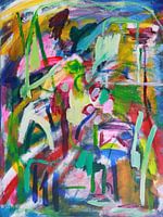 Ontdek steeds weer iets nieuws in dit veelkleurige schilderij. Speels, stimulerend en fantasierijk abstract schilderij.