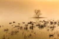 Veenmoeras bij ochtendmist van Frans Lemmens