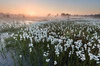 Een slinger veenpluis loop door een van de vennen in de buurt van Eindhoven. Het was een heerlijk koude ochtend met volop opstijgende nevel uit het ven. De warmte van de zon was een welkome aanvulling voor de foto en mijn verkleumde handen.