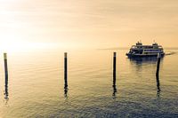 Veerboot op de Bodensee tussen Meersburg en Konstanz bij zonsondergang