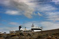 Veerboot richting de Waddeneilanden passeert de strekdam.