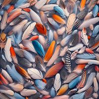 Een fijnzinnig beeld van allerlei veren en veertjes. Veerkracht! De prachtige natuurlijke tinten voeren hier de boventoon. De veertjes drijven op water. Dit werk zal prachtig staan op een muur waar een natuurlijke toets gewenst is.