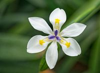 Dietes iridioides - de veertiendagenlelie, ook bekend als Morea iris, is een plantensoort uit de irisfamilie. Deze macrofoto toont een enkele veertiendagenlelie met grassprieten op de achtergrond.